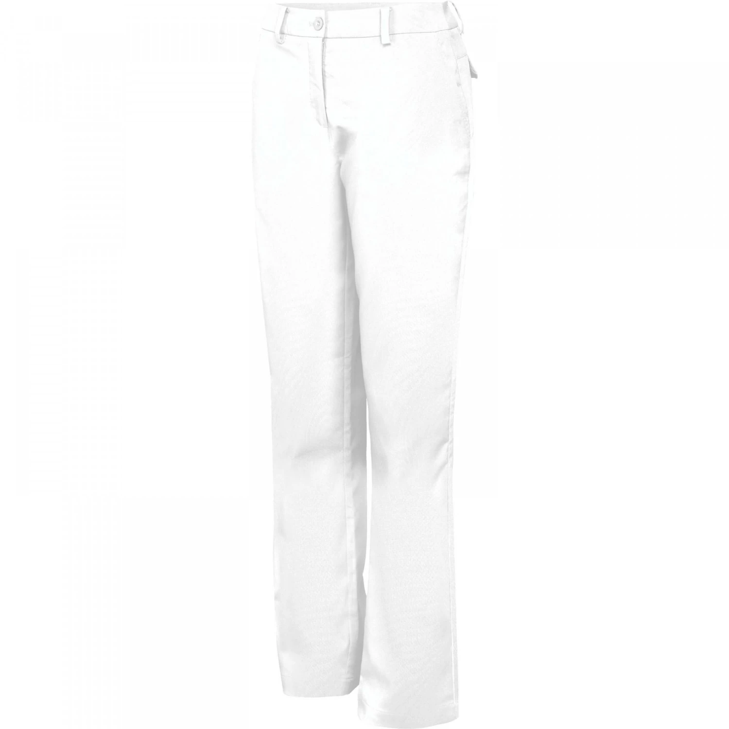 96% polyester / 4% elastaan. Zacht, waterafstotend materiaal voor optimaal comfort. Elegant en passend gesneden. Tailleband met lussen, 2 diepe zijzakken en 2 achterzakken met paspels en klep.