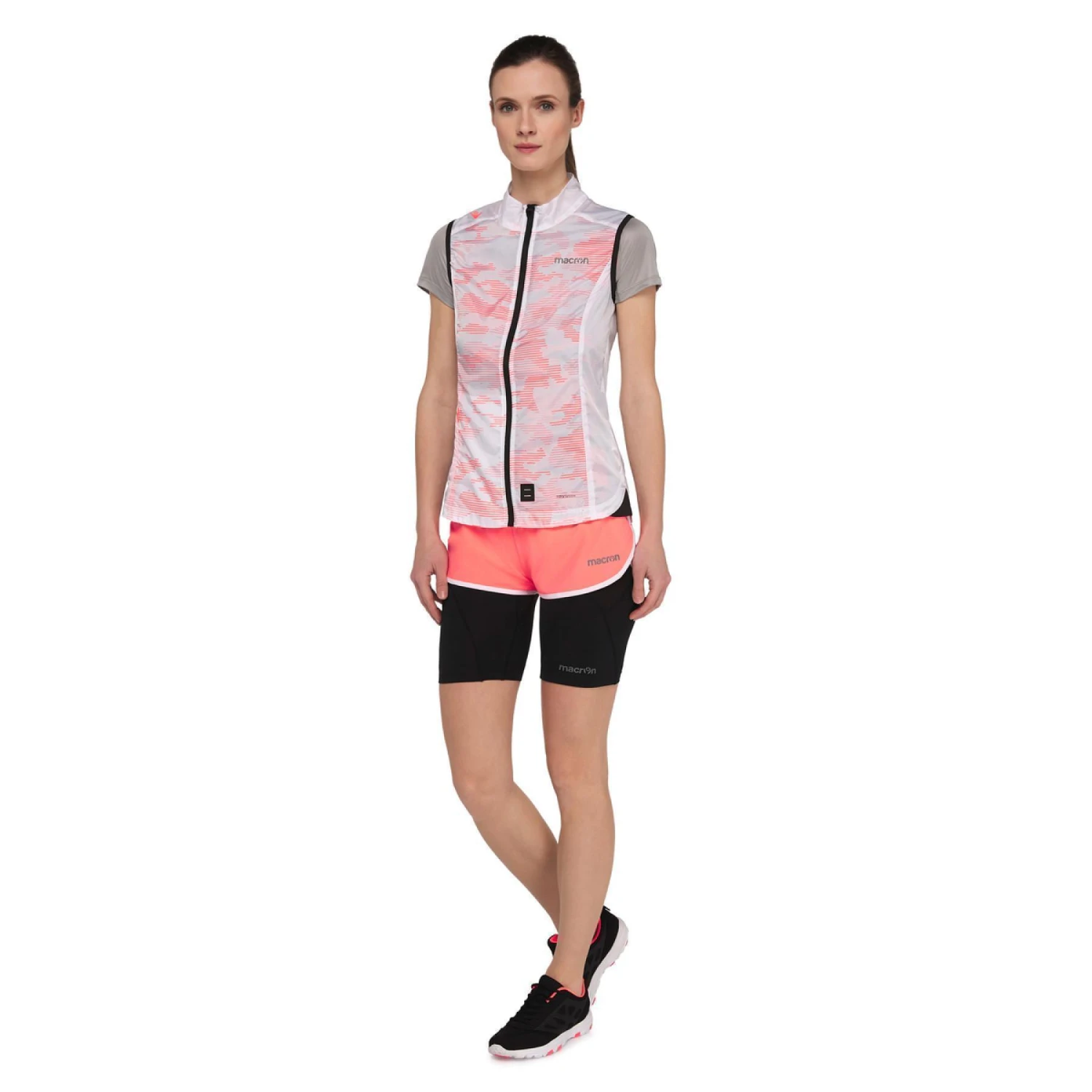 De Daisy microshort, gemaakt van rekbare microvezel, is licht en praktisch, perfect voor wedstrijden en trainingen tijdens het zomerseizoen. Het kledingstuk is voorzien van platte koraalkleurige fluorescerende trekkoorden, een interne slip en kleine zakjes en reflecterende inzetstukken, ontworpen om zelfs ’s nachts de zichtbaarheid te garanderen. De zijdelingse uitsnijding, benadrukt door een lichte split, geeft de shorts een zeer vrouwelijk tintje.